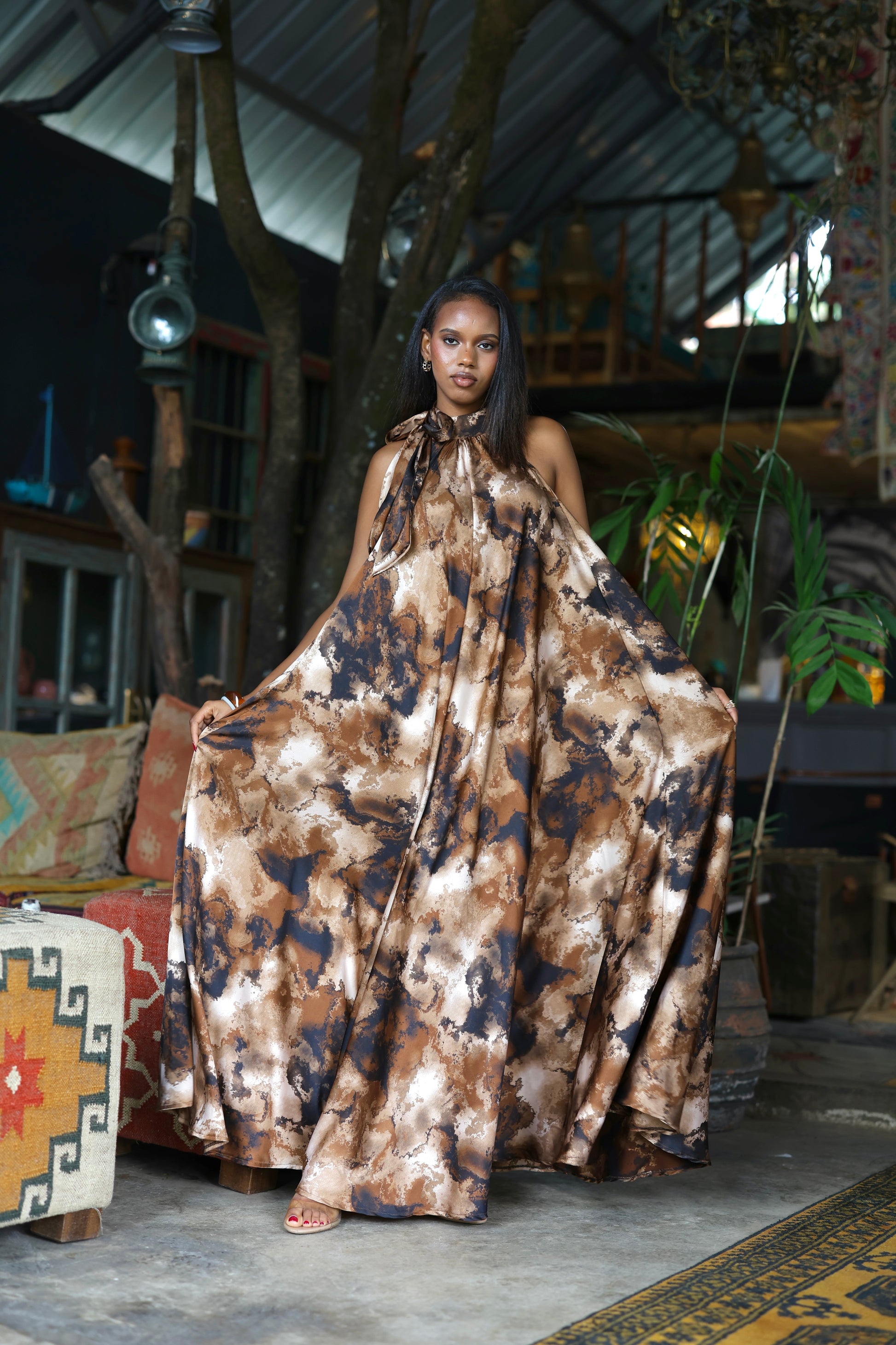 Cocoa Drift Derac - Silk Halter Dress