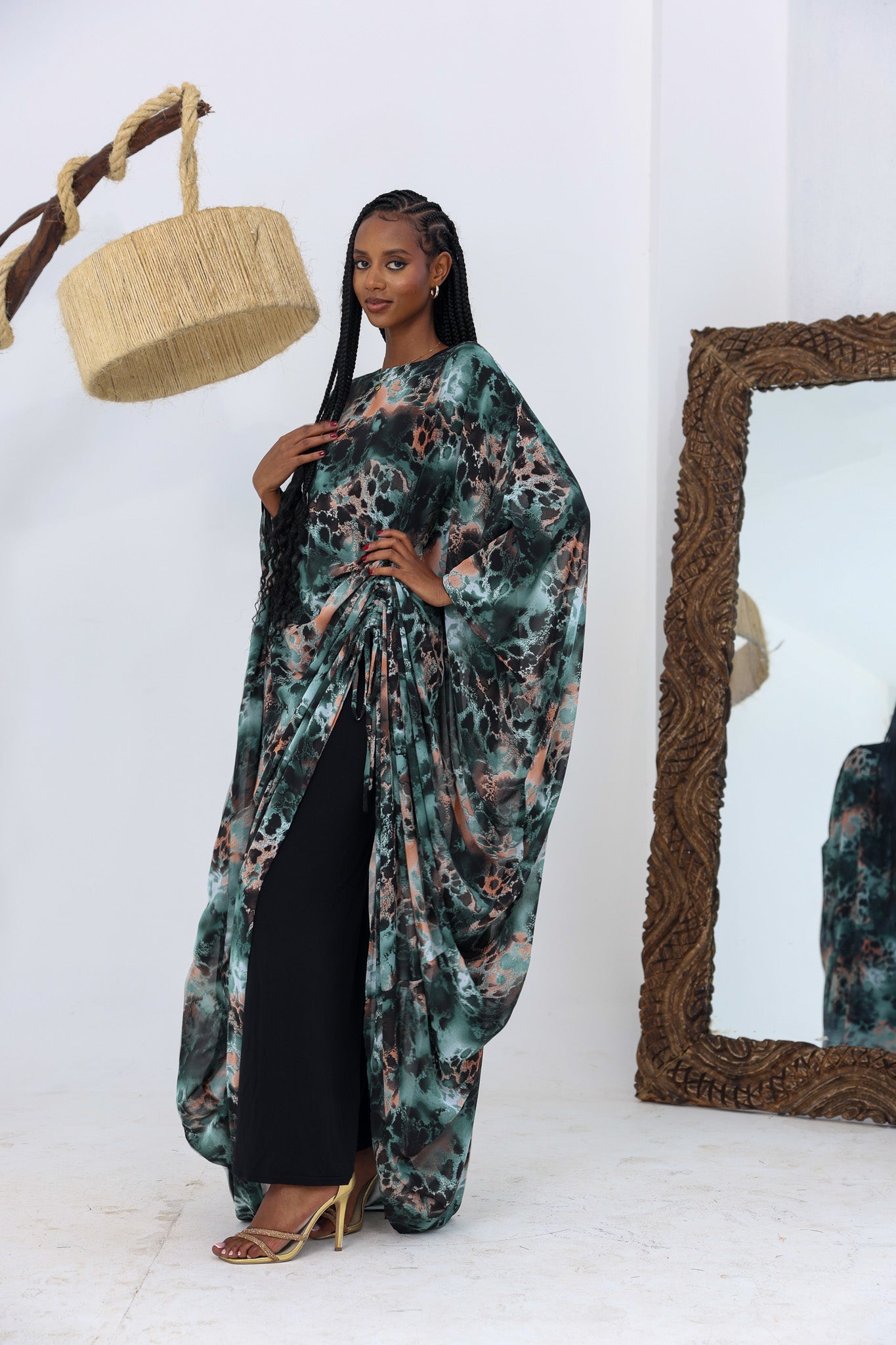 ✔ Inside tie to cinch around the waist
